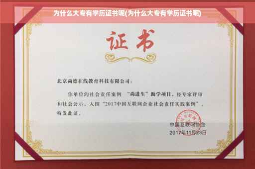 到此,以上就是小编对于为什么大专有学历证书呢的问题就介绍到这了,希望介绍关于为什么大专有学历证书呢的5点解答对大家有用。