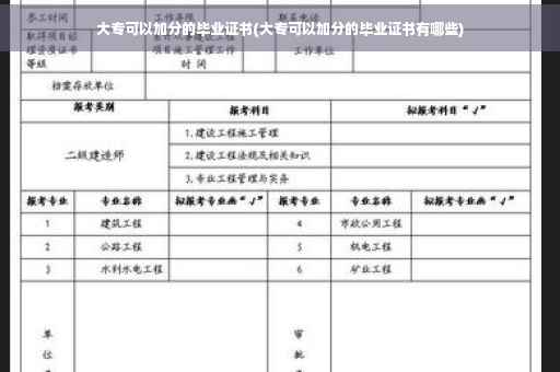 大家好,关于大专可以加分的毕业证书的问题,于是小编就整理了4个相关介绍大专可以加分的毕业证书的解答,让我们一起看看吧。