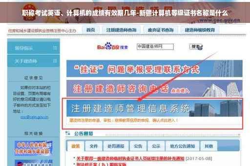 职称外语考试的合格证有效期要看您的成绩是否通过了国家线,如果是通过了国家线的话就是长期有效(上海,陕西,甘肃,新疆,西藏有自己的规定),如果只通过了省线的话就是当年有效。 职称计算机考试合格证书的有效期分两种, 一种是成绩在规定时限内有限,如果你拿到了证书,在规定时间内没有评聘职称,那到了规定的期限,证书就失效了。 一种是证书长期有效,但你评定了职称后就失效了,下次评定更高级别的职称时还需要重考。具体使用办法最好参照当地的人事网上关于职称评审的文件。 A、B级考试成绩5年内有效,C、D级考试成绩4年内有效,各等级成绩有效期均从发证之日起计算。