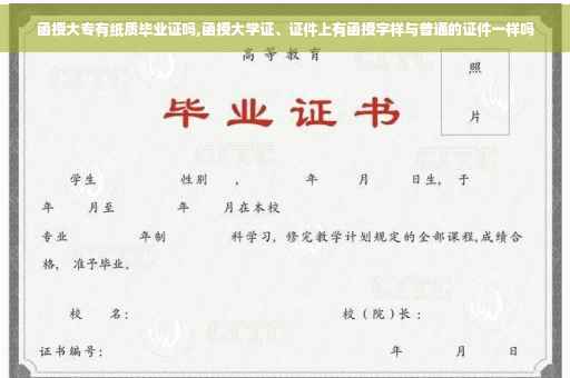 函授大专是有纸质毕业证的。函授大专是之前也属于成人学历提升方式之一,不过在2022年五月份已经取消了。这种成人学历提升,除了函授,还有自考,成考和国家开放大学这种国家认可,学信网可查的,还是全日制的,毕业了都有纸质版的毕业证书