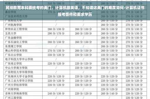 报考网络教育本科想要拿到本科毕业证,统考课计算机和英语是必须要通过的吗?答案是必须要考的。网络教育统考:是指教育部对现代远程教育试点高校网络教育部分公共基础课实施的全国统一考试,即对我国网络高等学历教育部分公共基础课的全国统一测试,简称“统考”。这两门统考课是报考网络教育本科层次的考生必须要通过的课程,一年有三次报考机会,报考时间为4月,9月和12月份。如果在学制内没有通过,可能会延期毕业,影响毕业时间。不过,对于满足条件的学员还可以申请统考免考。网络教育统考免考条件:(1)已具有国民教育系列本科以上学历(含本科)的学生,可免考全部统考科目;(2) 除计算机类专业学生外,获得全国计算机等级考试一级、或一级A、或一级B或以上级别证书者可免考“计算机应用基础”; 其他计算机等级证书获得者不能免考该课程;(3) 除英语专业学生外,获得大学英语等级考试(CET)4级或以上级别证书者、全国公共英语等级考试(PETS)三级或以上级别证书者、省级教育行政部门组织的成人教育学位英语考试合格证书者,可免考“大学英语”;(4) 在入学注册时年龄满40周岁的非英语专业学生可免考“大学英语”;(5) 除英语专业考生外,户籍在少数民族聚居地区的少数民族学生(参见《教育部关于开展现代远程教育试点高校网络教育部分公共基础课全国统一考试试点工作的实施意见》(教高[2004]5号)的附件:免考“大学英语”的少数民族学生的界定)可免考“大学英语”。若想要了解更多关于网络教育的相关最新资讯,请前往中国最大的教育资讯网站——中国教育在线远程教育频道进行查看和咨询!