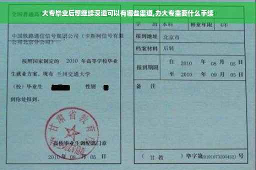 至于对专科毕业生,如果要再上?哪么有哪些渠道可以选择?渠道有很多种,如,成人高校,函授夜大,广播电视大学,但还有一些培训机构,对于如何选择,这里可以接合平时工作特点,可以利用晚上去夜大学习,也可以通过网上报名,自学,待到全国各类自学考试,再次报名参于全国成人自学考试,最后通过自学考试取得毕业证书,但切记,对有些打着教育培训机构的培训班,而国家教委确不认可的?一定要注意自己的学习结果是否认可?仅个人观点,供参考!谢谢!