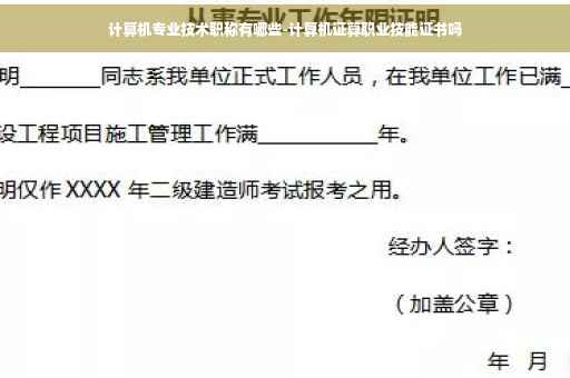 计算机专业技术职称有全国计算机信息高新技术考试,全国计算机信息高新技术证书作为反映计算机操作技能水平的基础性职业资格证书,在要求计算机操作能力并实行岗位准入控制的相应职业作为上岗证;在其它就业和职业评聘领域作为计算机相应操作能力的证明。