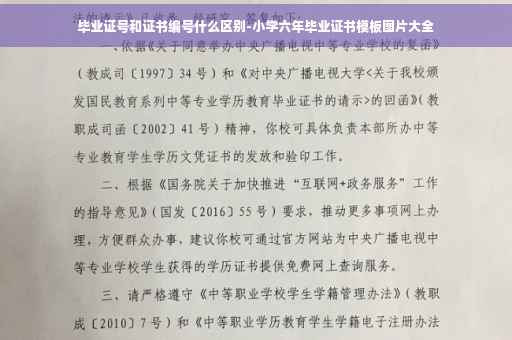 毕业证号和证书编号的区别是:毕业证号则是指学生在一定时期内修完应该要修的课程后,学校发给的学习合格证的编号。