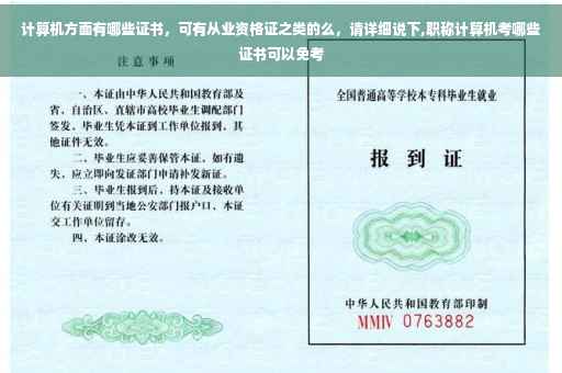 计算机在中国目前有三种从业资格证书,一类是操作证书,由劳动部门颁发,可通过各种社会培训机构参训后报名参加考试,如一级、二级和普通操作证书;二类是专业技术证书,由工信部组织考试,各省颁发证书,直接网上报名参加考试,分初级、中级、高级,如程序员、系统分析师、信息系统项目管理师、构架师等证书;三类是由专业信息公司组织专门的实用技术考试,颁发专业从业资格证书,如西门子交换机维护工程师、ORACLE数据库维护工程师、华为路由器售后服务工程师等证书。