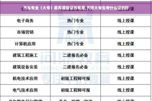 与此相关的还有泛泛然的营销师、营销员证书,等等。国家劳动部有汽车销售顾问、汽车商务营销师、汽车经纪师等CETTIC培训合格证书。汽车维修领域:汽车维修管理师高级专项职业资格(OSTA全国证)、汽车售后服务管理师(CETTIC全国证)、汽车配件营销师高级专项职业资格(OSTA全国证)、汽车碰撞修复师高级专项职业资格(OSTA全国证)。还有地方认证的汽车修理工初级、中级、高级、技师级均有效,因为有国家职业标准,且经国家试点成熟交由地方认证,可全国通用到此,以上就是小编对于汽修大专生考什么证书好的问题就介绍到这了,希望介绍关于汽修大专生考什么证书好的4点解答对大家有用。