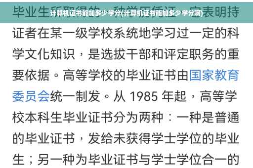 大家好,关于计算机证书能加多少学分的问题,于是小编就整理了5个相关介绍计算机证书能加多少学分的解答,让我们一起看看吧。