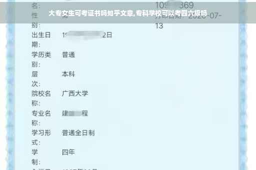 大家好,关于大专女生可考证书吗知乎的问题,于是小编就整理了5个相关介绍大专女生可考证书吗知乎的解答,让我们一起看看吧。