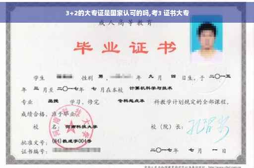 3+2的大专毕业证是成人高考大专毕业证,含金量不如全日制。