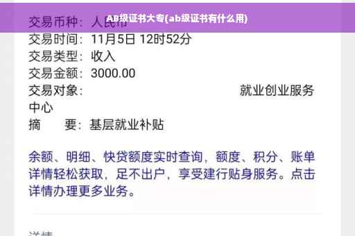 大家好,关于AB级证书大专的问题,于是小编就整理了5个相关介绍AB级证书大专的解答,让我们一起看看吧。