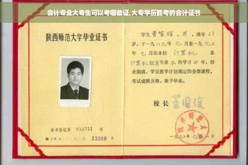 大专在读生会计专业可以考的证书有:会计从业资格证书;会计职称证书;注册会计师证书。会计从业资格考试也就是所说的“会计证”,根据国家的规定,在我国所有要从事会计行业的人,必须持有该证书。