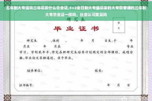 3+2全日制大专最后发的大专和普通的三年制大专毕业证不一样,社会认可度不高。因为3+2不是全日制大专,只是中职学校开办的非全日制成人教育大专,因为中职学校只能接受初中毕业的学生,它又不能发全日制大专,只能发非全日制五年成人大专。