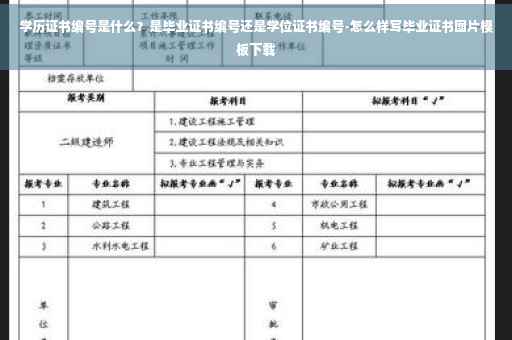 毕(结)业证书编号即为注册号,使用阿拉伯数字,统一规范为18位。(一)普通、成人高等教育毕(结)业证书注册号由学校或其他教育机构按以下顺序编排:前5位为学校或其他教育机构的国标代码;第6位为办学类型代码;第7至10位为年份;第11至12位为培养层次代码;第13位至17位为学校对毕(结)业证书编排的序号。2002年学历证书编号扩充至18位(但当年有部分高校仍使用17位)。