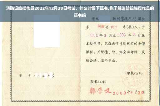 消防设施操作员证书在考完试成绩合格,八个月后就会有证书发布。消防设施操作员需要进行理论和实操考核,理论会考各种消防系统,各种灭火器,火灾形成的原因等等相关联的。实操会考各种灭火器的使用方法,识别喷淋系统,防火卷帘门的操作等等。