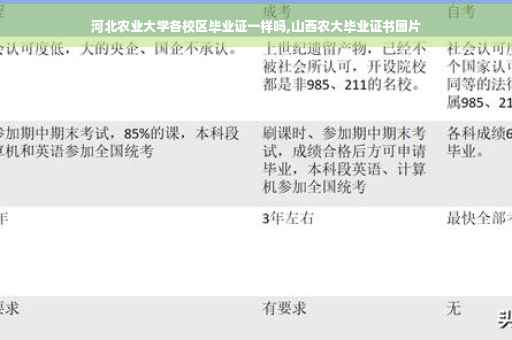 一样的。河北农业大学各校区的毕业证是一样的,最近几年,河北农业大学各个校区所发的毕业证都是完全一样的,盖的章,用的纸张,写的词语都是一样的就连外封皮都是一样的。其实其他大学各个校区毕业证也都是一样的,这是根据教育部规定。