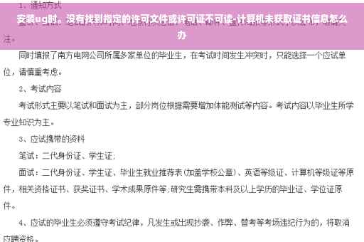 这个问题可能是由于未正确安装许可证文件或许可证文件已损坏或丢失所引起的。解决方法包括重新安装软件或重新安装许可证文件。如果这些方法不起作用,您可以联系软件开发商寻求帮助或购买新的许可证文件。在安装UG软件前,需要确保您的计算机满足系统要求并已安装所需的依赖项。