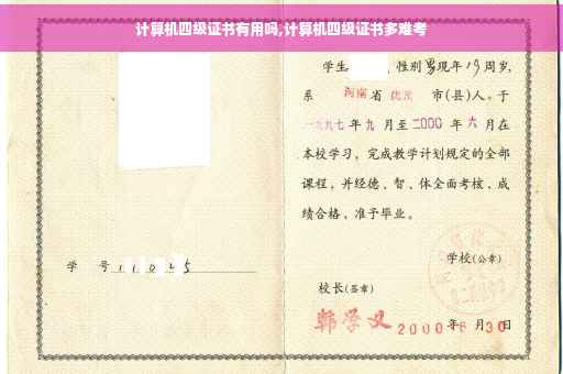 过了四级,但如果单靠那个四级证,你也找不到好工作,老实说,四级的地位很尴尬——食之无味弃之可惜,对于非计算机专业的人员来说,计算机等级考试的证书可以增加他们的就业竞争力,但是4级对于他们来说用不上——过于专业化了,2、3级足够满足他们的要求;而对于计算机专业的人员来说,四级不够用——四级的内容仅相当于计算机自考本科关于计算机方面的内容,当今社会还没听说过仅凭着自考本科毕业证就能找到很好的工作的,在校的全日制本科生学的东西要比四级多不少。 四级的主要作用不在于给别人看,而是在于给你自己一个学习的指路牌,积累知识用的。要记住NCRE当初设立的目的就是全民普及电脑知识用的。对于喜欢计算机但是未能考取计算机专业的同学,对于没能考上大学但是希望学习计算机的同学,对于学习计算机专业想检验一下自己的知识是否够基本标准线的同学,四级都是一个很好的选择。四级的内容涉及了计算机专业本科的经典主干核心课程,学了它以后,再学习一点实用的技术如单片机编程、asp、jsp、j2ee等,再自己开发出一个中小型的软件或者网站。并向用人单位展示你的作品,你会得到一个惊喜。 记住,四级只是阶梯,只是过程,而不是终点和最终目标
