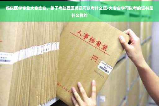 临床医学专业大专毕业,一般都是考助理医师证,然后做相关的工作后在考医师资格证; 据《中华人民共和国执业医师法》及有关规定具有下列条件之一的,可以参加医师资格考试: (一)具有高等学校医学专业本科以上学历,在执业医师指导下,在医疗、预防、保健机构中试用期满一年的; (二)取得执业助理医师执业证书后,具有高等学校医学专科学历,在医疗、预防、保健机构中工作满二年;具有中等专业学校医学专业学历,在医疗、预防、保健机构中工作满五年的。 (三)具有高等学校医学专科学历或者中等专业学校医学专业学历,在执业医师指导下,在医疗、预防、保健机构中试用期满一年的,可以参加执业助理医师资格考试。 以师承方式学习传统医学满三年或者经多年实践医术确有专长的,经县级以上人民政府卫生行政部门确定的传统医学专业组织或者医疗、预防、保健机构考核合格并推荐,可以参加执业医师资格或者执业助理医师资格考试。考试的内容和办法由国务院卫生行政部门另行制定。
