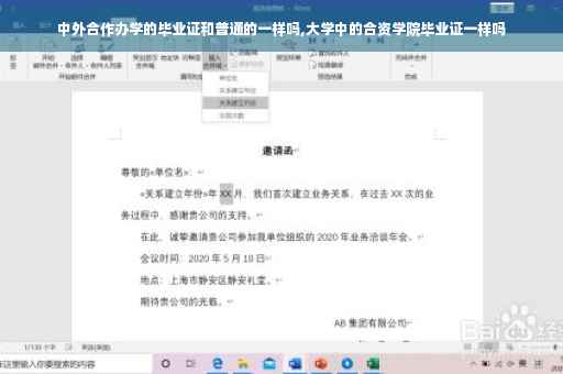 中外合作办学与普通大学的毕业证一样吗 是一样的。除了国内的学校可以取得毕业证以外,还可以在对应该的外校也取得学位证书,也就是说可以拿到两份文凭。但是一般来说,中外合作办学的学费是比较贵