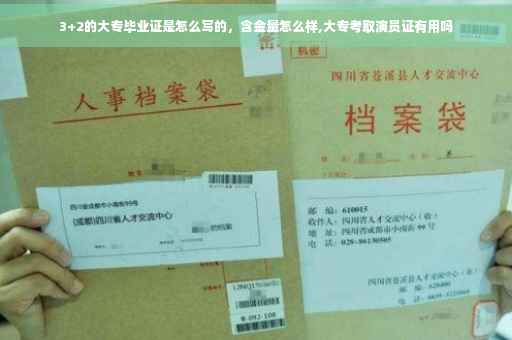 3+2大专是中专学校开设的一种班,就是初中毕业生在中专报名读五年书就可以直接拿大专毕业证了,其实是成人高考大专毕业证,只有通过对口高职进入的大专才是全日制,所以3+2的大专毕业证是成人高考大专毕业证,含金量不如全日制。