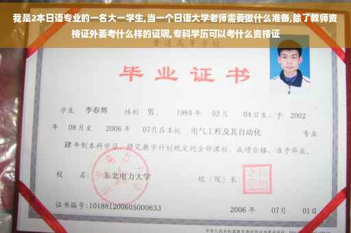 我是一名大学日语教师,作为专业日语教师,你需要日语国际能力测试一级证书,日语专业八级证书,普通话等级考试证书。