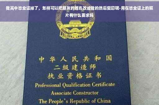 高中毕业证掉了,最好不要把朋友的姓名改成自己的, 高中毕业证书由省教育厅统一管理,省、市两级教育主管部门审查、验印,毕业证书一律于毕业当年颁发,不予补发。但教育局可以办理基础教育学校毕业证书遗失证明,具体程序如下:(1)本人到原毕业学校查核毕业证书存根或出具证明;(2)本人登报声明原证遗失作废;(3)本人持证明、报纸、照片等材料到市教育局基础教育科申报;(4)教育局核发遗失证明。 如果只是出国留学需要,到学校开具高中毕业证明及高中三年学习成绩后,再到公证处做个公证也就可以了。