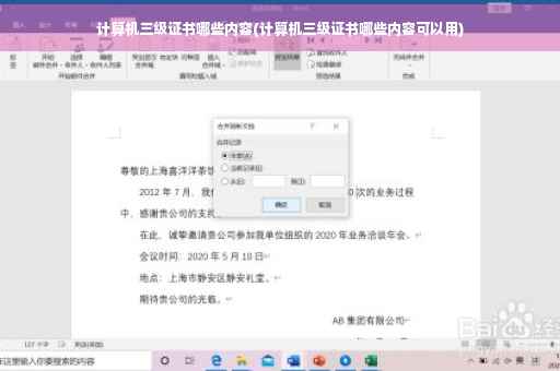 大家好,关于计算机三级证书哪些内容的问题,于是小编就整理了5个相关介绍计算机三级证书哪些内容的解答,让我们一起看看吧。