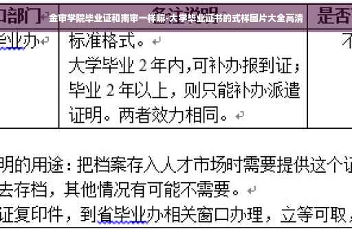 金审学院的毕业证与南审学院的毕业证在形式上可能存在一定的差异,因为不同学院的毕业证可能有不同的样式和设计。然而,毕业证本身是代表学生完成学业并获得学位的证明文件,其具有相同的功能和意义。无论是金审学院的毕业证还是南审学院的毕业证,都代表着学生顺利完成学业,具备一定的专业知识和能力,这对于就业或继续深造都至关重要。因此,无论持有哪个学校的毕业证,只要它是合法有效的,都具有同等的价值和作用。