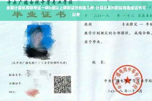 全国计算机等级考试一级b或以上级别证书有二级vb、二级c语言、二级C++、二级Java、二级WEB程序设计、二级VFP、三级PC技术、三级信息管理技术、三级数据库技术、三级网络技术等。 全国计算机等级考试(NationalComputerRankExamination,以下简称NCRE),是经原国家教育委员会(现教育部)批准,由教育部考试中心主办,面向社会,用于考查非计算机专业应试人员计算机应用知识与技能的全国性计算机水平考试体系。