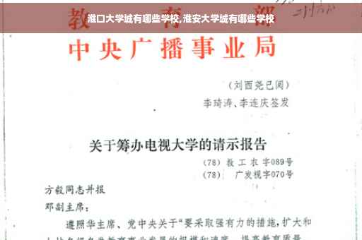 有淮阴工学院,江苏信息职业技术学院,江苏财经职业技术学院,江苏食品药品职业技术学院,淮阴商业学校,江苏护理职业技术学院,淮安文化艺术学校,南京林业大学淮安校区。至于传说中的和西安联办的西安外国语大学淮安学院还不知道有没有。中共淮安市委党校也座落于这里。