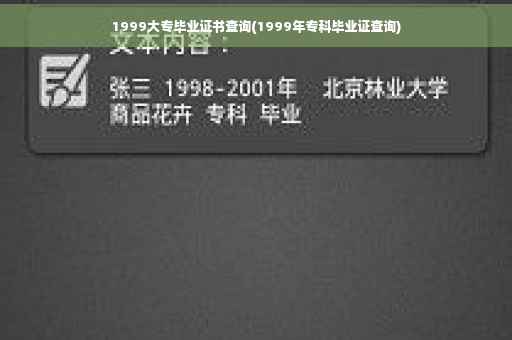 到此,以上就是小编对于1999大专毕业证书查询的问题就介绍到这了,希望介绍关于1999大专毕业证书查询的5点解答对大家有用。