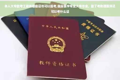 临床医学专业大专毕业,一般都是考助理医师证,然后做相关的工作后在考医师资格证; 据《中华人民共和国执业医师法》及有关规定具有下列条件之一的,可以参加医师资格考试: (一)具有高等学校医学专业本科以上学历,在执业医师指导下,在医疗、预防、保健机构中试用期满一年的; (二)取得执业助理医师执业证书后,具有高等学校医学专科学历,在医疗、预防、保健机构中工作满二年;具有中等专业学校医学专业学历,在医疗、预防、保健机构中工作满五年的。 (三)具有高等学校医学专科学历或者中等专业学校医学专业学历,在执业医师指导下,在医疗、预防、保健机构中试用期满一年的,可以参加执业助理医师资格考试。 以师承方式学习传统医学满三年或者经多年实践医术确有专长的,经县级以上人民政府卫生行政部门确定的传统医学专业组织或者医疗、预防、保健机构考核合格并推荐,可以参加执业医师资格或者执业助理医师资格考试。考试的内容和办法由国务院卫生行政部门另行制定。