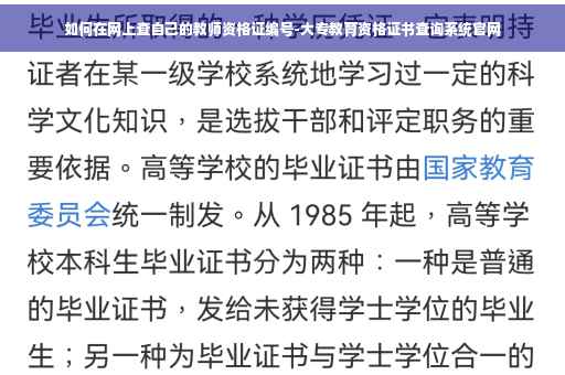 要查询自己的教师资格证编号,您需要先了解自己的教师资格证编号获取途径。以下是几种可能的途径: