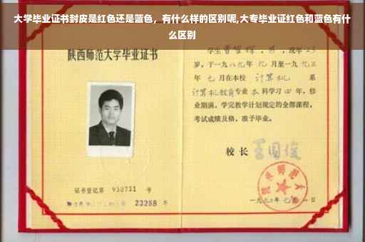 原来是红色的,从2005届起就改用蓝色了,并且和内心完全分离;毕业证内心也增强了防伪技术(主要是防止制假)。2000年以后的大学毕业证书都可以在中国高等学校学生信息网上查询真伪,封面和内芯完全分离,用什么颜色的封面对毕业证真假没有影响,关键是内芯,只要内芯是真的,在上述网站上查得到就行。封面都是中华人民共和国教育部监制的,并印有“中华人民共和国教育部监制”字样。