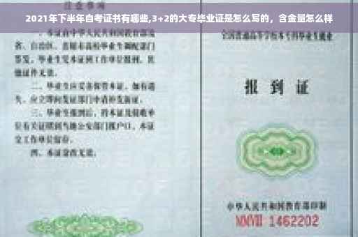 3+2的大专毕业证是成人高考大专毕业证,含金量不如全日制。