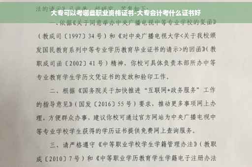 大家好,关于大专会计考什么证书的问题,于是小编就整理了3个相关介绍大专会计考什么证书的解答,让我们一起看看吧。