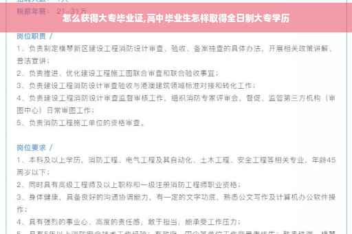 高中学生要取得全日制大专学历,顾名思义,全日制就是必须专门在高职大专的院校校脱产学习,读书,获得的文凭才叫全日制大专的毕业证。