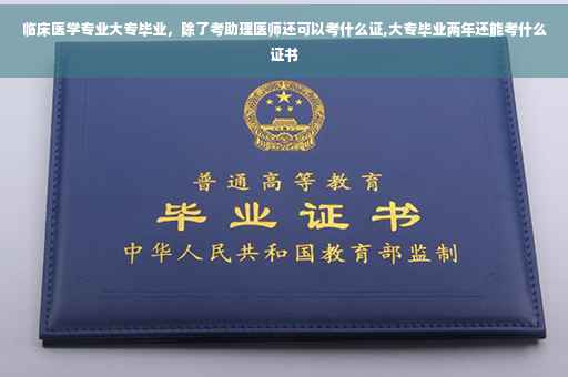 临床医学专业大专毕业,一般都是考助理医师证,然后做相关的工作后在考医师资格证; 据《中华人民共和国执业医师法》及有关规定具有下列条件之一的,可以参加医师资格考试: (一)具有高等学校医学专业本科以上学历,在执业医师指导下,在医疗、预防、保健机构中试用期满一年的; (二)取得执业助理医师执业证书后,具有高等学校医学专科学历,在医疗、预防、保健机构中工作满二年;具有中等专业学校医学专业学历,在医疗、预防、保健机构中工作满五年的。 (三)具有高等学校医学专科学历或者中等专业学校医学专业学历,在执业医师指导下,在医疗、预防、保健机构中试用期满一年的,可以参加执业助理医师资格考试。 以师承方式学习传统医学满三年或者经多年实践医术确有专长的,经县级以上人民政府卫生行政部门确定的传统医学专业组织或者医疗、预防、保健机构考核合格并推荐,可以参加执业医师资格或者执业助理医师资格考试。考试的内容和办法由国务院卫生行政部门另行制定。