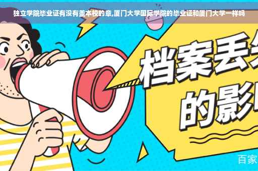 但独立学院毕业证书上加盖的是某某大学某某学院印章,而学校本部学生的毕业证书只盖有学校校名印章。例如厦门大学嘉庚学院的毕业证书加印的是“厦门大学嘉庚学院”的印章,区别于本部的“厦门大学”印章。