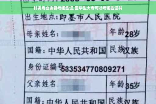 针灸专业要考的证书有中医资格证、针灸推拿师资格证、中药师资格证。具有高等学校中医学专业本科以上学历,毕业后在医疗、保健机构中试用期满一年的,可以申请参加中医执业医师资格考试。