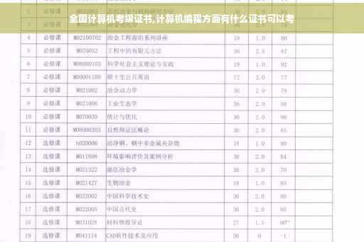 主要包括:全国计算机等级考试、微软认证、全国计算机高新技术考试、中国计算机软件专业技术资格证。 编程是编写程序的中文简称,就是让计算机为解决某个问题而使用某种程序设计语言编写程序代码,并最终得到相应结果的过程。 为了使计算机能够理解人的意图,人类就必须要将需解决的问题的思路、方法、和手段通过计算机能够理解的形式告诉计算机,使得计算机能够根据人的指令一步一步去工作,完成某种特定的任务。这种人和计算机之间交流的过程就是编程。