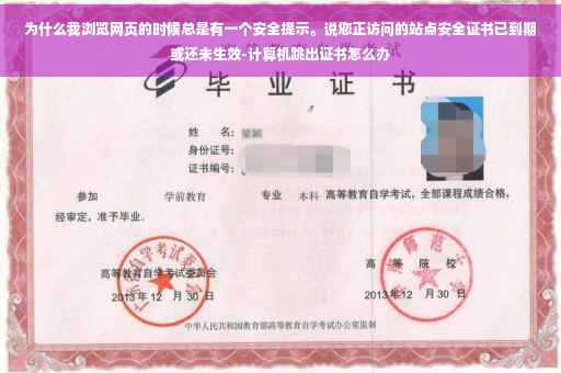 具体步骤: 方法一 1.把鼠标箭头移动到桌面右下角的时间位置悬停,查看系统时间是否正确,如果显示的时间是错误的话,双击“时间”; 2.在弹出的窗口中修改“时间”为此时的正确时间,然后点击“应用”-“确定”; 方法二 在弹出的错误信息中单击选择“继续浏览此网站(不推荐)”; 然后单击浏览器地址栏后面的“证书错误”,在弹出的窗口中点击“查看证书”; 接着在弹出的“证书”窗口中点击“安装证书”; 然后一直下一步,直到安装完成!到此,以上就是小编对于计算机跳出证书的问题就介绍到这了,希望介绍关于计算机跳出证书的5点解答对大家有用。