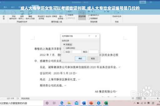 大家好,关于成人大专学历女生可以考哪些证书的问题,于是小编就整理了5个相关介绍成人大专学历女生可以考哪些证书的解答,让我们一起看看吧。