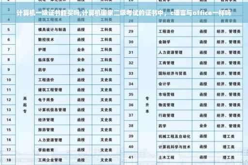 1、不一样啊,office是办公,考得就是ppt,word,excel,计算机知识。而c语言是指编程。office是从几年前新增的,题少,考的时候很容易抽到新题。而c语言考了很久了,题量很多,基本上都是原题和类似题,考过的几率更大。但是对于非计算机专业的office更实用。2、计算机二级 科目:语言程序设计类(C、C++、Java、Visual Basic、Web)、数据库程序设计类(Visual FoxPro、Access、MySQL)、办公软件高级应用(MS Office 高级应用)共九个科目 形式:完全采取上机考试形式。各科上机考试时间均为 120 分钟, 满分 100 分。 获证条件:总分不低于 60 分。 级别:程序设计、办公软件高级应用级。考核内容包括计算机语言与基础程序设计能力,要求参试者掌握一门计算机语言,可选类别有高级语言程序设计类、数据库程序设计类、Web程序设计类等;二级还包括办公软件高级应用能力,要求参试者具有计算机应用知识及 MS Office 办公软件的高级应用能力,能够在实际办公环境中开展具体应用。