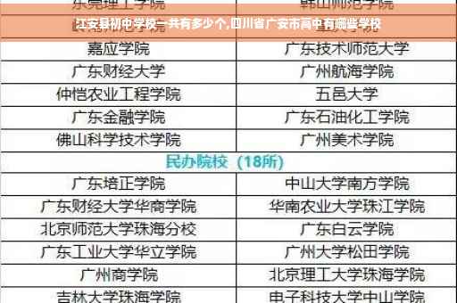 广安市: 友谊中学 广安中学(原广安一中) 广安二中 广安三中(原广福中学) 广安市育才学校 岳池县: 岳池中学 岳池一中 邻水县: 邻水中学 邻水一中 邻水二中 武胜县: 武胜中学 烈面中学 飞龙中学 华蓥市: 华蓥中学 广安实验中学 罗渡中学等等
