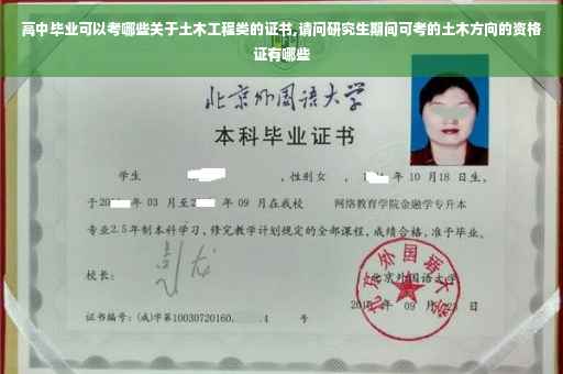 高中毕业后可以考取土木工程类的职业资格证书,如“土木工程技术员”、“注册土木工程师助理”等等。