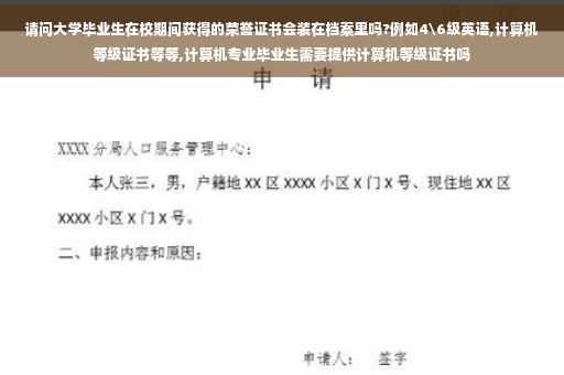 大学毕业生在校期间获得的荣誉证书会,例如4\6级英语,计算机等级证书等等.这些东东是国家认证的,当然会有记录的,当然不是把证书放在里面,放不下,但是里面有你的记录:如XX年,XX以XX分通过了国家英语四级等.但是另外的一种情况,如:你在学校的演讲比赛得奖,在作文大赛里面得奖,或者就是说班上或者社团里面获得奖,如果你上报了的话,会在你的每学期的记录上获奖情况那一栏有的,如果没有上报的话就没有了.学校现在应该都有素质拓展的认证吧,上面有详细的记录.北京反正基本的学校都有!放心吧,四六级,计算机啊是有的!!!:)