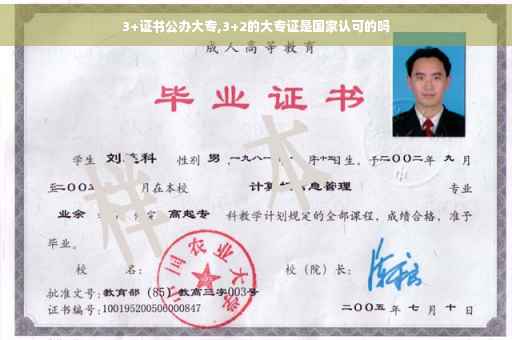 3+2的专科毕业证也是全日制毕业证书,只是他应该或者说大部分有这种3+2模式的学校,基本都是一些职业技术学院毕业出来领取的,毕业证属于,高职高专类的大专毕业证书,也是全日制毕业证,只是类别属于高职高专类。