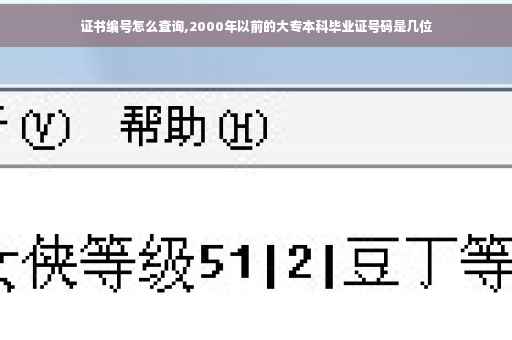 2000年之前的大专本科毕业证号码是18位,毕业证书编号即为注册号使用阿拉伯数字统一规范为18位大学毕业证,18位,最前面是学校编号人,候氏年最后是你的系的编号,以及你自己的编号