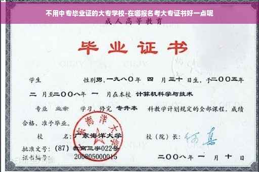 没有不用中专毕业证的大专学校。因为大专都是需要中专毕业证原件的,全日制大专在学生办理报名的时候也是需要学生出示中专毕业证,非全日制函授大专报名也需要中专毕业证,非全日制成人高考大专也是需要有中专毕业证才能参加成人高考